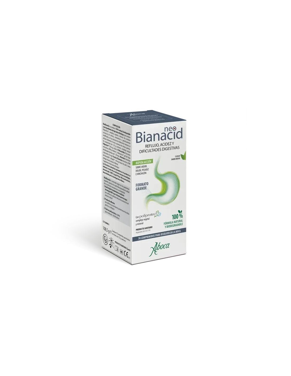ABOCANeoBianacid, acidez, reflujo gastroesofágico y dificultades digestivas y gastritis, 70 comprimidos