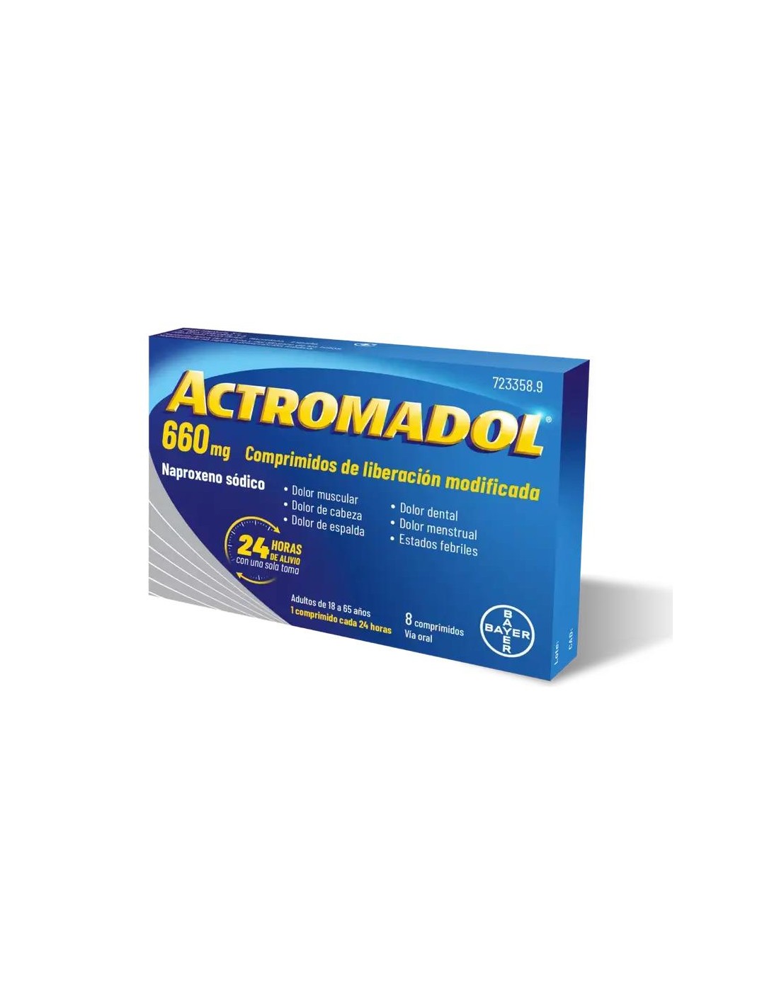 Actromadol está indicado para adultos entre 18 y 65 años. La dosis recomendada es 1 comprimido de 660 mg de naproxeno sódico cada 24 horas